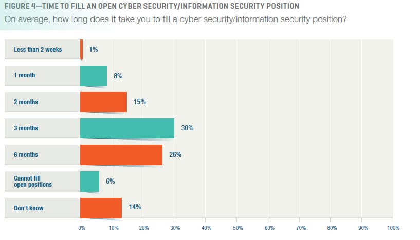 ISACA found that over a quarter of respondents can’t find suitable candidates to fortify the cyber security armour in their organization. Even within the 59% of companies which could find the suitable candidates took a long time to find them.